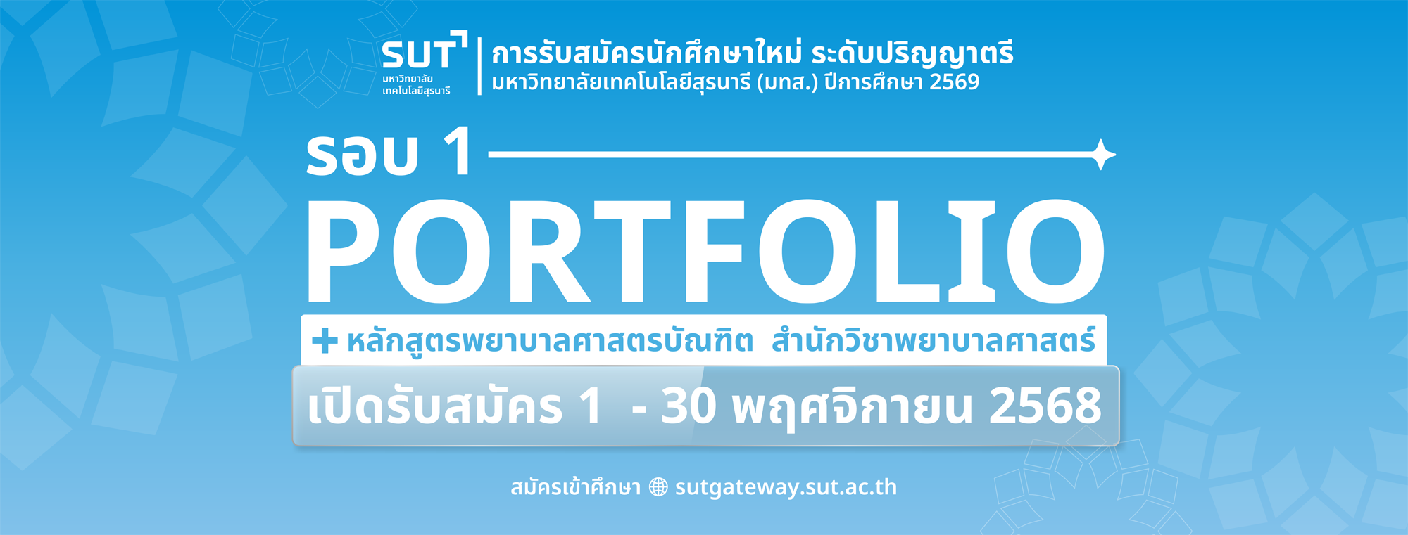 | 8 | มหาวิทยาลัยประกาศรายชื่อผู้ผ่านการคัดเลือกเข้าศึกษาที่ยืนยันสิทธิ์ผ่านระบบเคลียริ่งเฮาส์แล้ว ที่เว็บไซต์ http://sutgateway.sut.ac.th | 10 มี.ค. 69 |