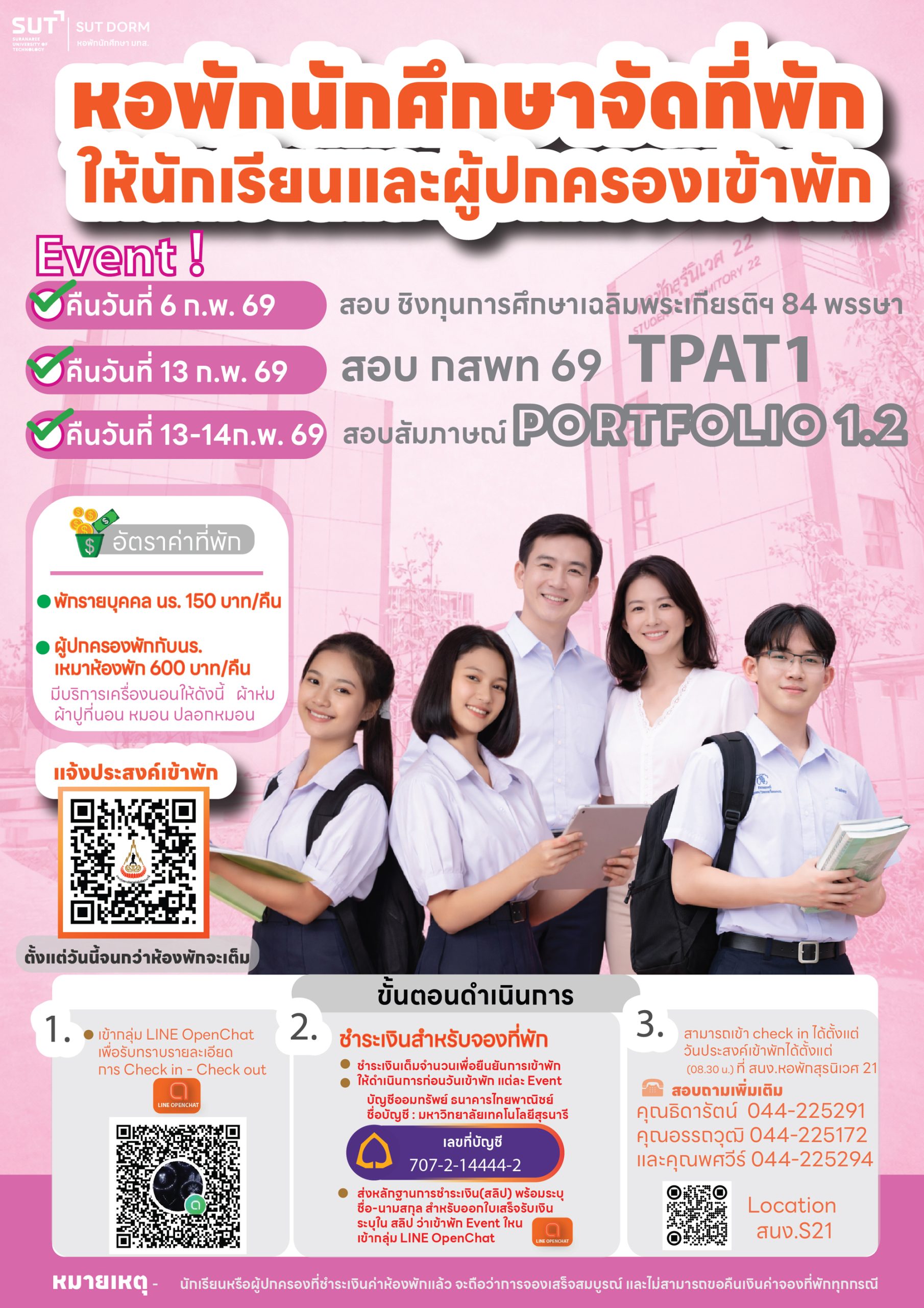 ไม่ต้องจองคิว โปรดติดต่ออีเมล์ admissionsut@sut.ac.th ภายในวันที่ 6 ก.พ. 69