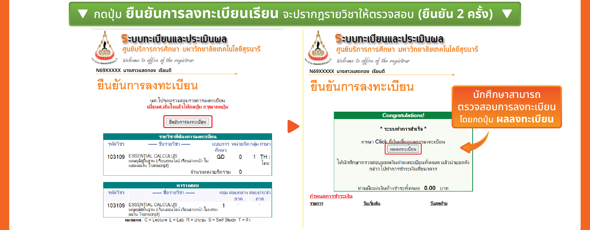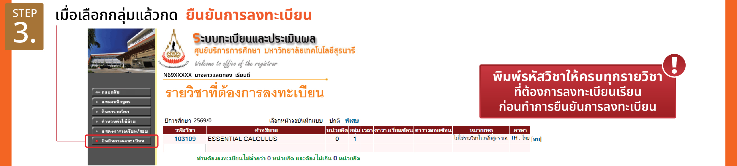 ก่อนทำการกดปุ่ม [ยืนยันการลงทะเบียน]