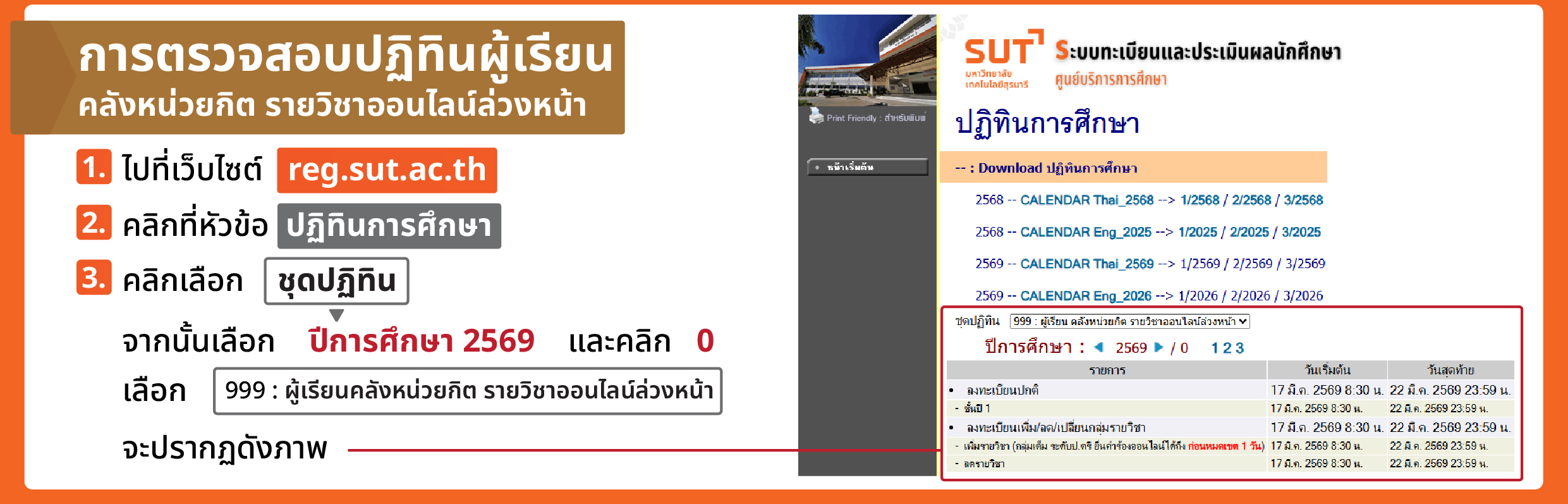 วิธีตรวจสอบปฏิทินผู้เรียนคลังหน่วยกิต รายวิชาออกไลน์ล่วงหน้า