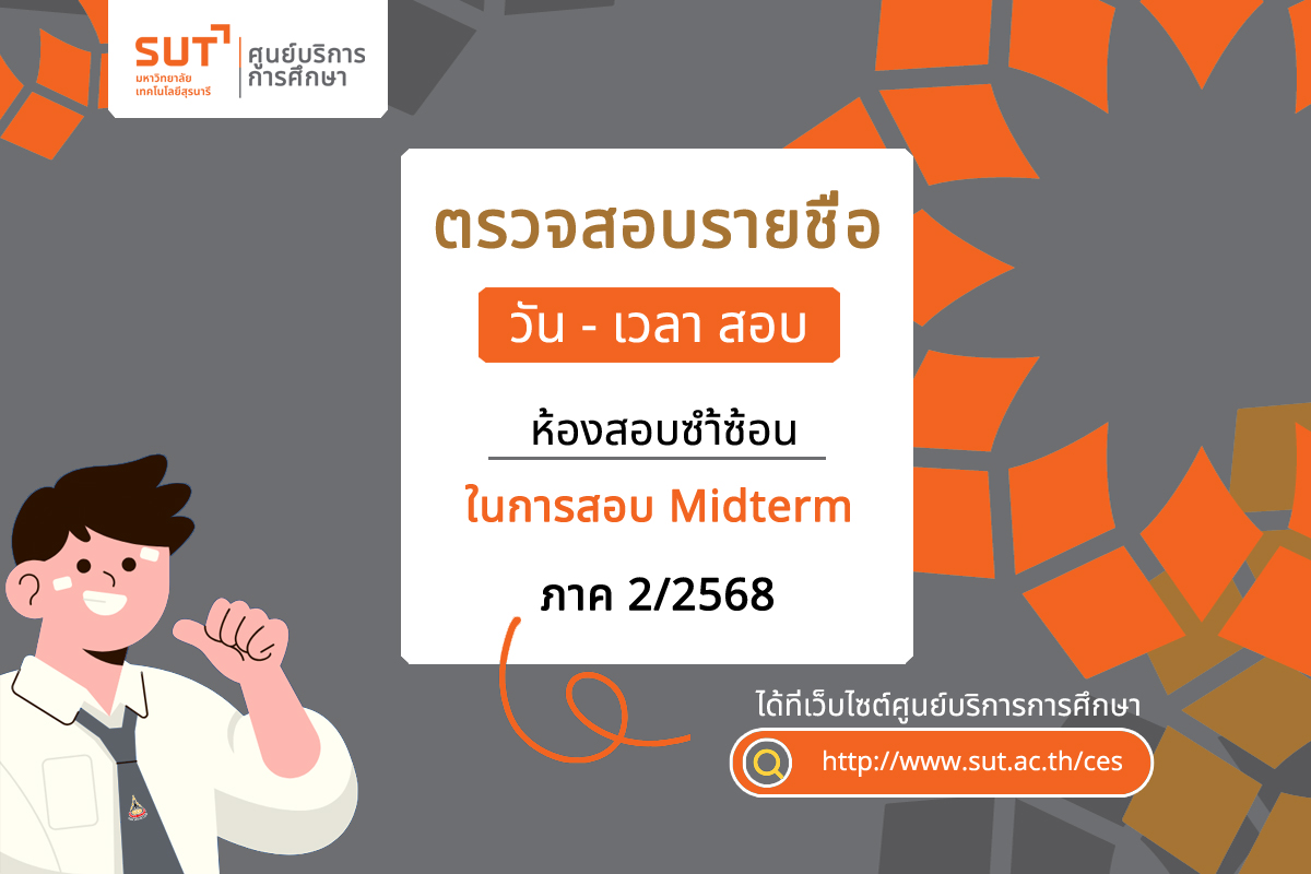 นักศึกษาที่ขอลงทะเบียนเรียนโดยมีเวลาสอบซ้ำซ้อน ในการสอบกลางภาค 2/2568 โปรดตรวจสอบรายชื่อ วัน เวลา และห้องสอบซ้ำซ้อน